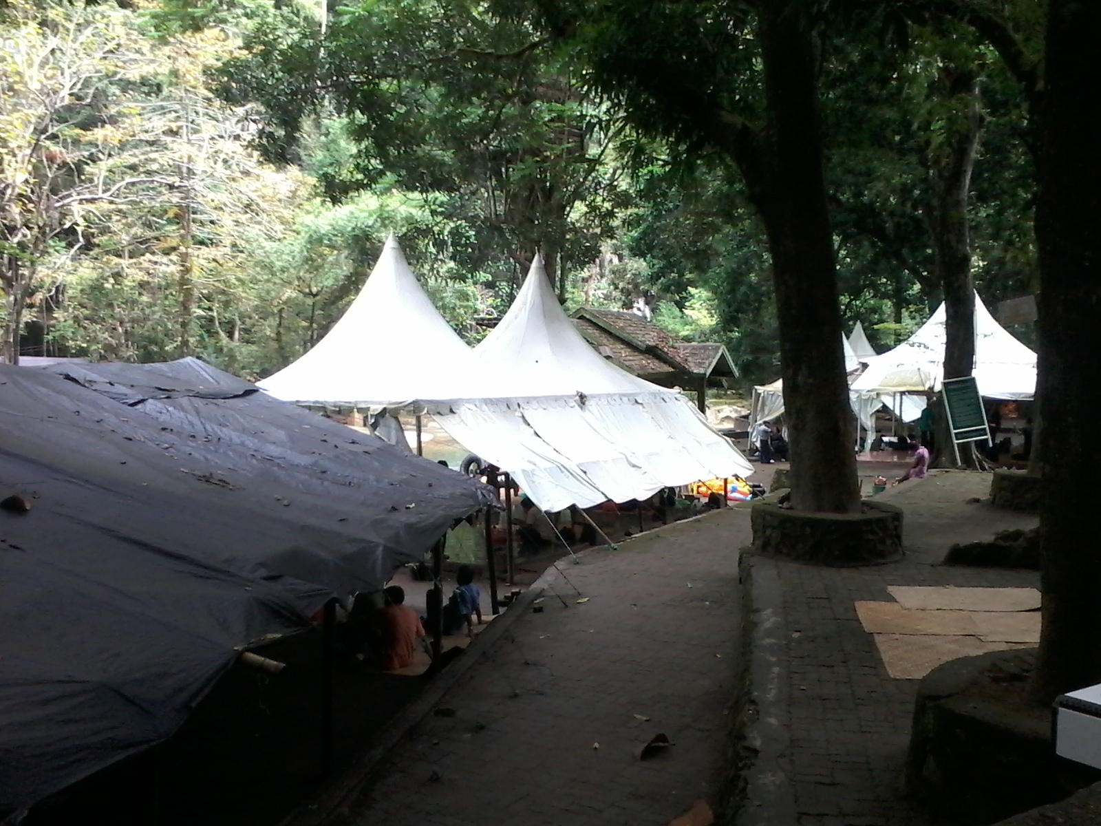 Pada saat pengunjung memasuki kawasan wisata alam ini, maka akan ditemukan banyak pedagang kaki lima yang menjajakan berbagai jualan. Selain dari makanan atau minuman serta beberapa jenis aksesoris, maka pengunjung dapat menemukan berbagai hasil kreasi yang terbuat dari kupu-kupu yang telah diawetkan. Miris melihat kupu-kupu justru dijadikan sebagai bahan mata pencaharian beberapa orang.